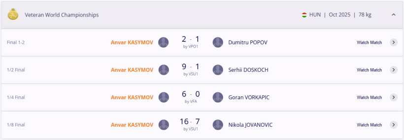 У Кыргызстана еще одно золото на ЧМ по борьбе среди ветеранов