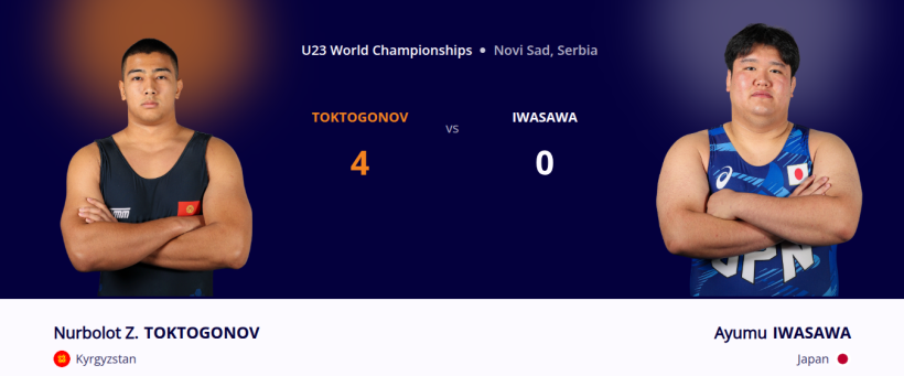 ЧМ U23: борец из Кыргызстана уложил японца на лопатки за 31 секунду