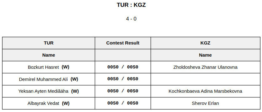 Сборная Кыргызстана стартовала со стадии 1/4 финала, где уступила соперникам из Турции со счетом 0:4.