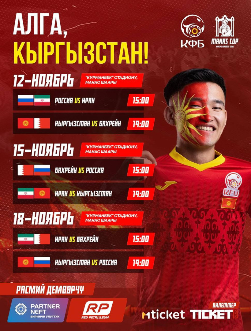 Турнир «Кубок Манаса» пройдет 12-18 ноября при участии молодежных сборных Бахрейна, Ирана, Кыргызстана и России, составленных из игроков не старше 23 лет.