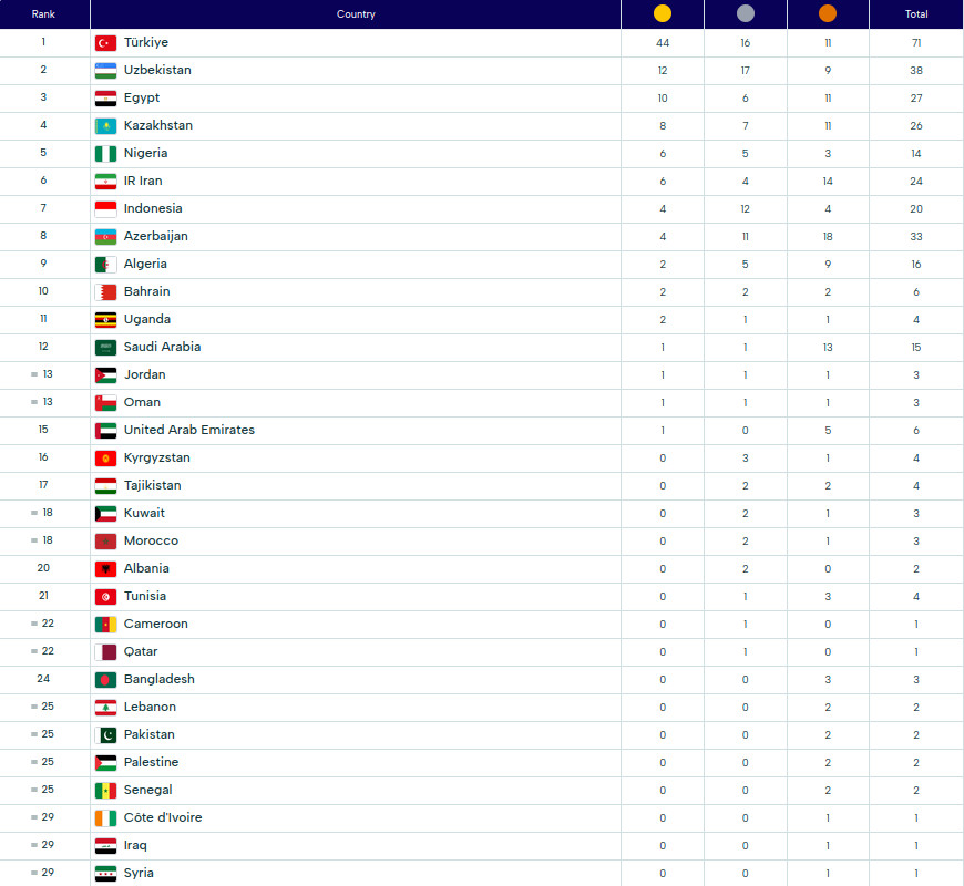 Исламские игры: Кыргызстан занимает 16 место в медальном зачете