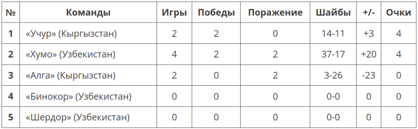 Команда из Ташкента после этого дважды крупно обыграла «СДЮШОРСИ Алга», в которой играют хоккеисты из молодежной сборной Кыргызстана.