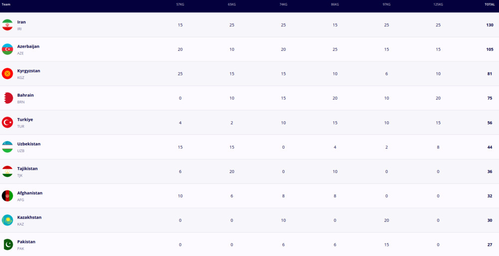 Сборная Кыргызстана по греко-римской борьбе также заняла 3 место в командном зачете, а женская сборная — 4 место.