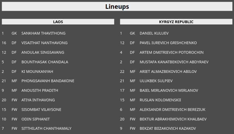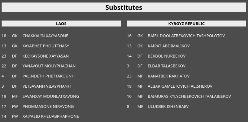 Стартовый состав сборной Кыргызстана U17 на матч против Лаоса