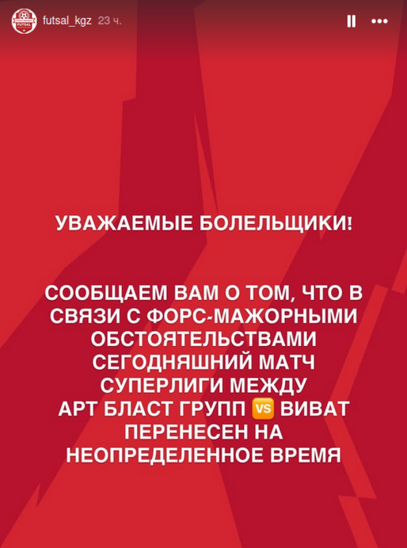 Один из матчей чемпионата Кыргызстана по футзалу среди команд Суперлиги перенесен.