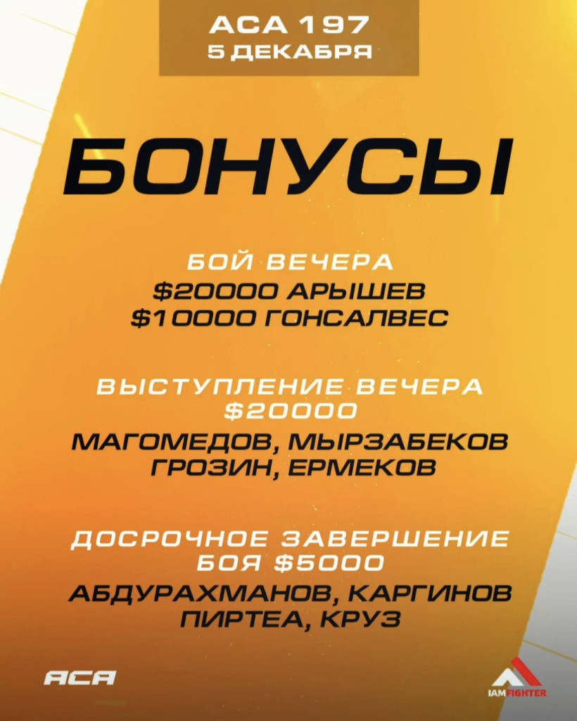 Кыргызстанец Жакшылык Мырзабеков выиграл бонус на турнире бойцовской организации ACA в России, сообщает Prosports.kz.