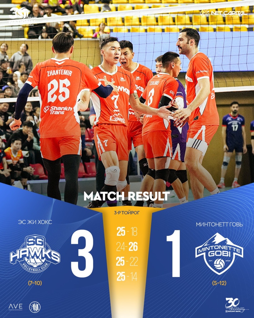 Команда кыргызстанца Жантемира Жээнбек уулу одержала очередную победу в чемпионате Монголии по волейболу.