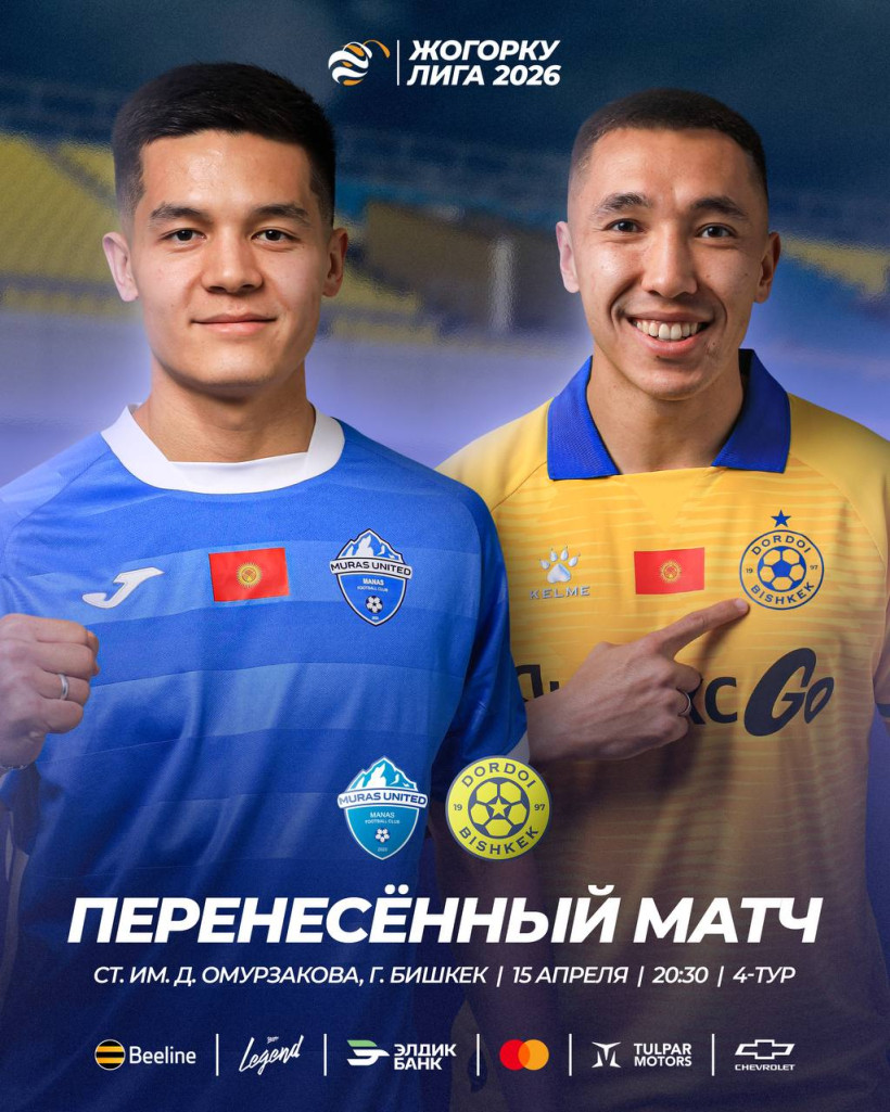 Как сообщает Prosports.kz, поединок 4 тура между командами «Мурас Юнайтед» и «Дордой» 15 апреля.