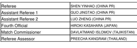 Обслуживать матч будет бригада судей из Китая под руководством Шэнь Инь Хао.