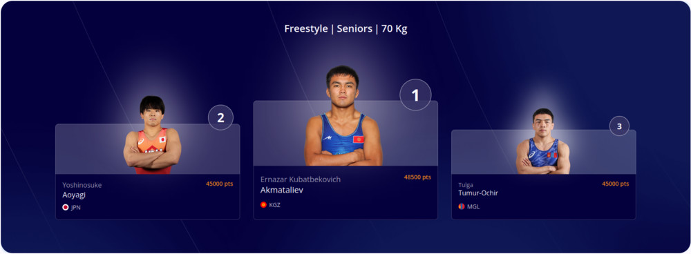 Акматалиев также получил 6500 рейтинговых баллов, которые позволили ему подняться на 1 место в рейтинге по версии UWW.